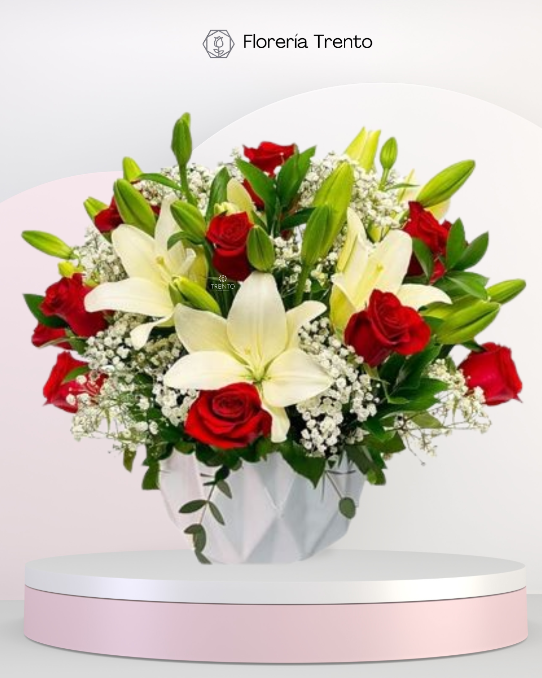 Este arreglo de rosas y lilis es ideal para una ocasión especial.