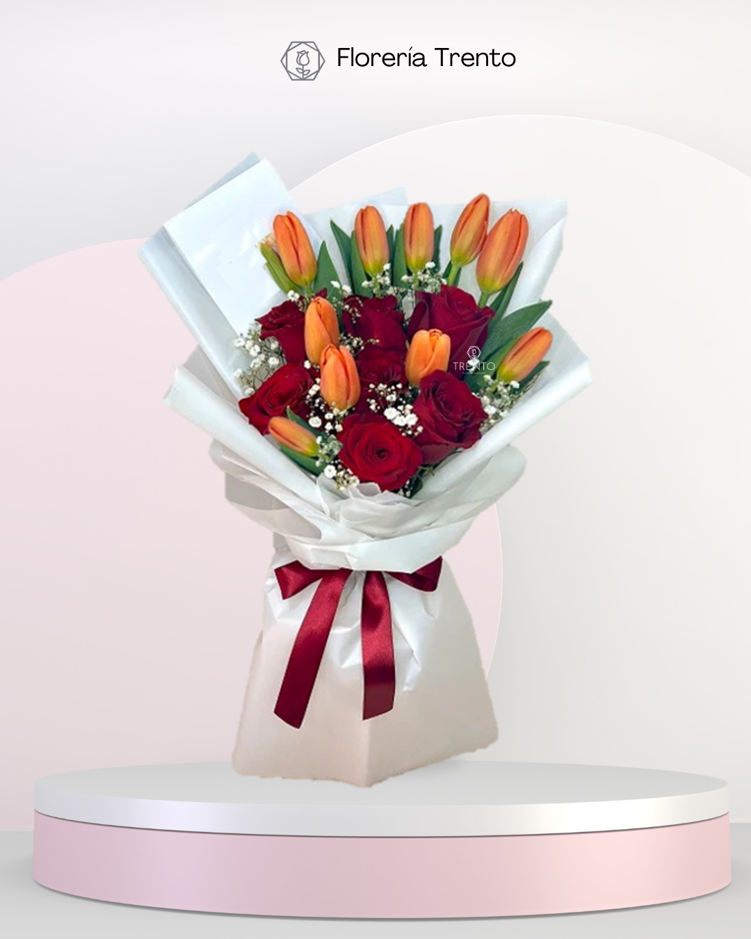 Regala este bouquet de tulipanes y rosas rojas, es ideal para una ocasión especial.
