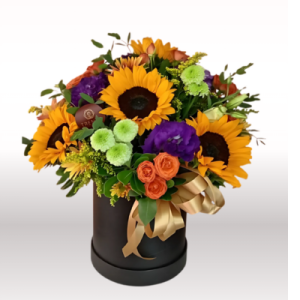 Caja SKY BLUE rosas, flores mixtas y Suculenta